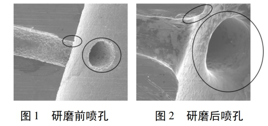 之前和之后的高壓燃油噴射孔形狀磨,圖1和圖2所示