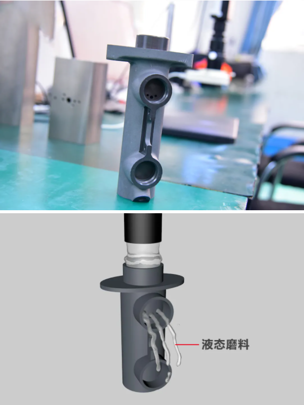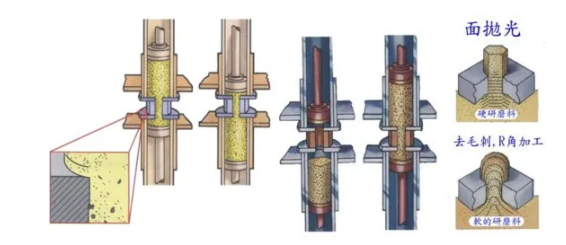 磨粒流拋光技術(AFM),稱流體拋光,或磨料流去毛刺、擠壓研磨等,是一種先進的表面精整加工工藝,其主要特征是將具有粘彈性的流體磨料擠壓通過加工工件,達到去除內腔毛刺、內表面精整拋光和加工圓角的目的。對工件不同區域(包括難進入區域)的去毛刺、倒圓角、拋光可以同時進行、一次性完成的。